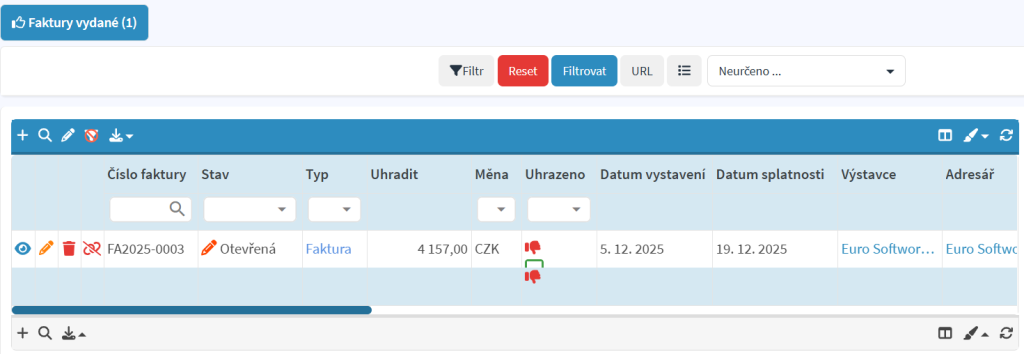 • Generování dokladu